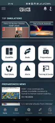 Collapse Survivor SimWarn provides both realistic simulations of bad disasters that lead to loss of law and order, economic and societal breakdown, and real alerts from the Fortitude Ranch survival community threat warning system.