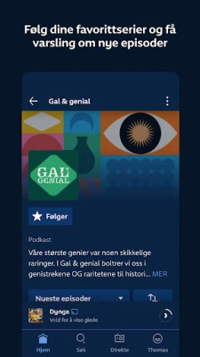 Hør våre anbefalte podkaster, bla gjennom kategoriene, eller finn det du vil høre ved å søke. Appen husker hva du har hørt på tvers av alle enhetene dine, og du kan enkelt spole til avsnittene du ønsker å høre. Du kan laste ned podcasts for å lytte offline, og favoritt-markere de seriene du liker best.